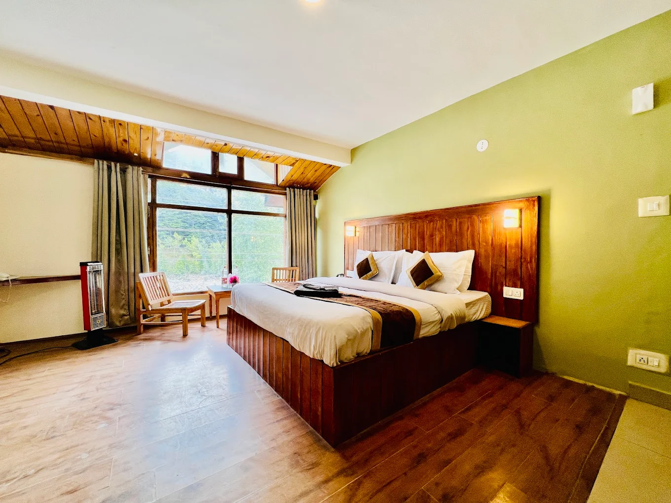 The hotel features tastefully designed rooms with modern décor, wooden interiors, and large windows offering breathtaking views. Every corner reflects comfort, cleanliness, and warmth.