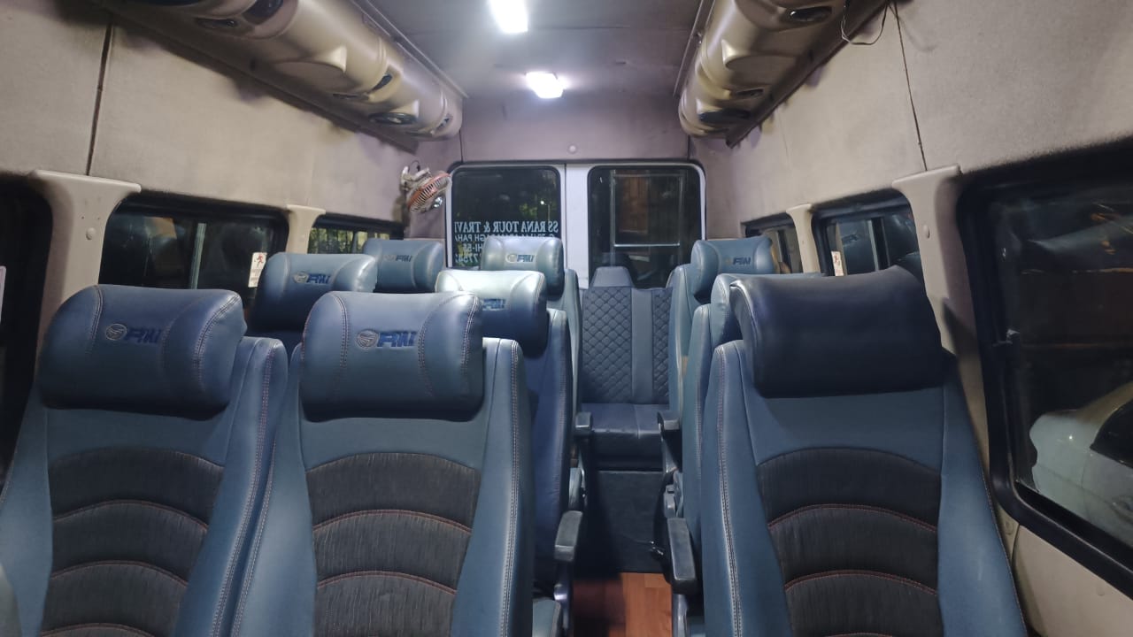 The 12 Seater Tempo Traveller comes with comfortable seating for up to 12 passengers, making it ideal for medium-sized groups.